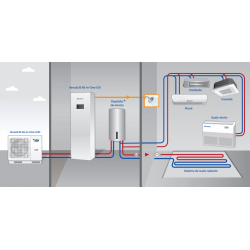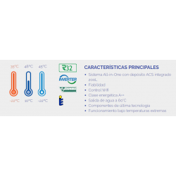 La versión All-in-One ofrece potencias de 4 a 10 kW y se recomienda para nuevas instalaciones en viviendas con espacio reducido. Incorpora el acumulador de ACS para proporcionar el mayor confort en el hogar.